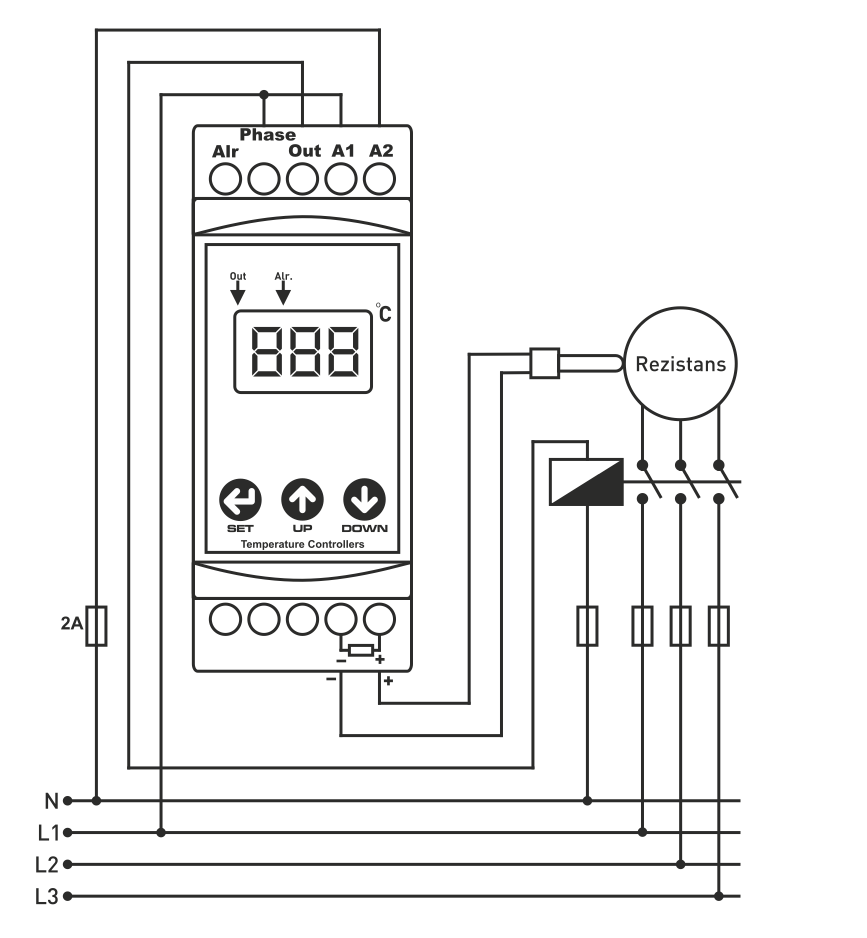 2-Point Temperature Controller / Thermostat for Rail Mounting with External Sensor. Control Type ON-OFF ON-OFF, Measurement Range -30ºC ...+150ºC (made in Turkey, TENSE) DT-321DIN
