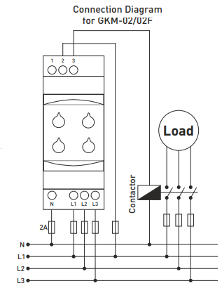 Three-phase monitoring/protection relay for controlling overvoltage, undervoltage, sequence, and phase failure with timer. GKM-02/02F (ENergized)