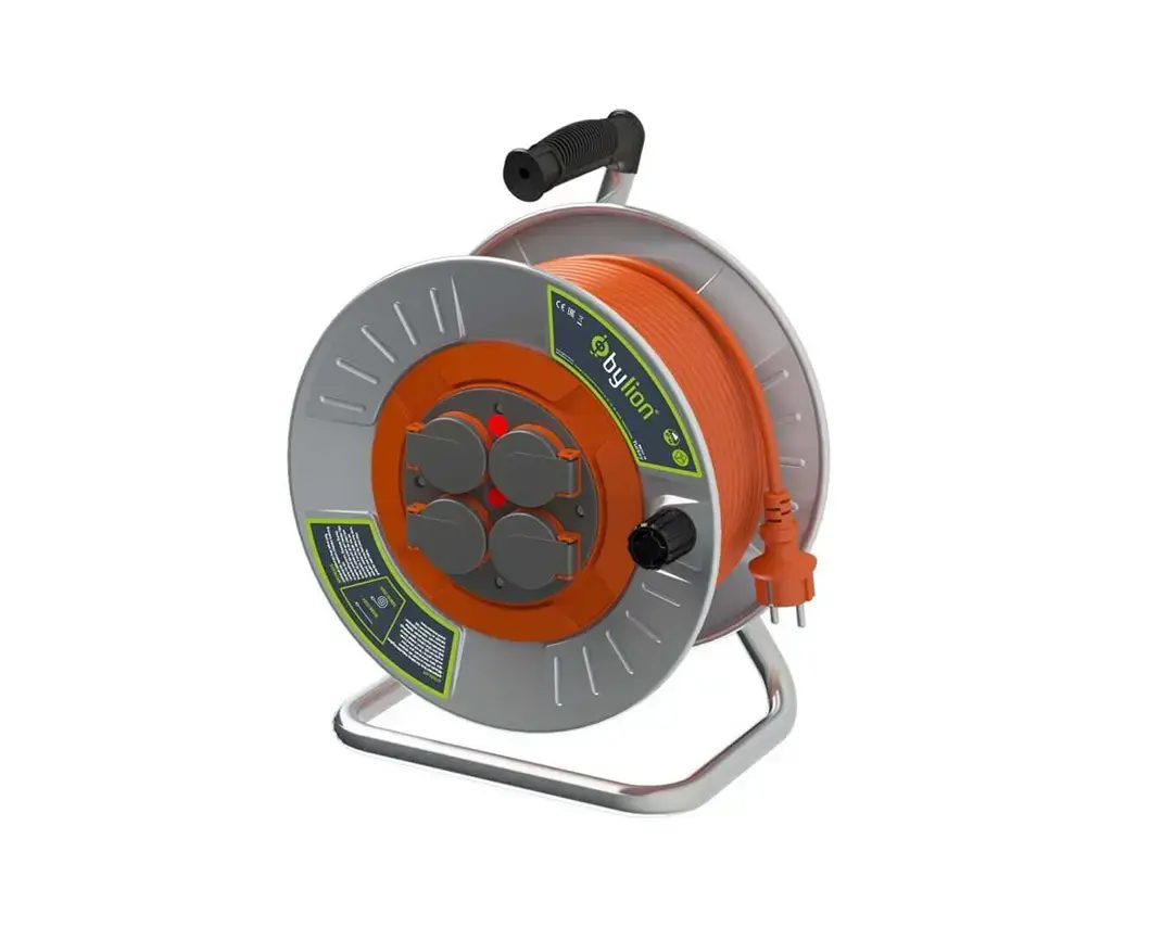 Metallkabeltrommel IP44, französischer Typ, 4x2P+E, Metalltrommel Hi-Impact, L= 50M, Kabelfarbe: orange